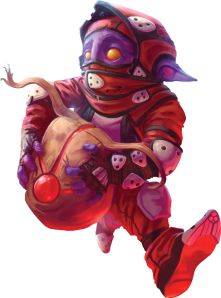 House Sanctum has the greatest number of humans amongst their ranks, and their floating islands are a haven from the world below, where humans have a tendency to be bullied by tougher or craftier species. But a great many humans also seek knowledge, and a cybernetic upgrade, through the wisdom of House Logos, or quickly master the skills to flourish in a Shadows guild. Humans feel the call of the Untamed more than any other civilised species, and some have suggested a common ancestry between them and Niffle apes. It’s less common to find humans in other Houses, but not unheard of: meat-headed warriors, devoted cultists, and brain-washed infiltration agents have roles open to them in Brobnar, Dis and Mars respectively.